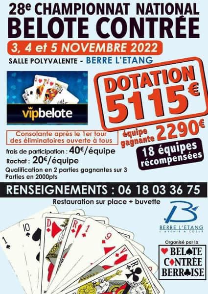 28ème Championnat Noational de belote contrée - Berre l'Etang - 3, 4, 5 novembre 2022