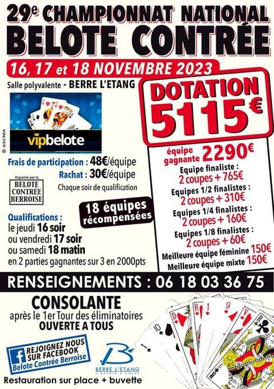 29ème championnat national de belote contrée - Berre l'Etang - 16, 17, 18 novembre 2023