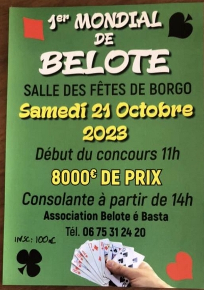 1er Mondial de Belote - Salle des fêtes de Borgo - 21 octobre 2023