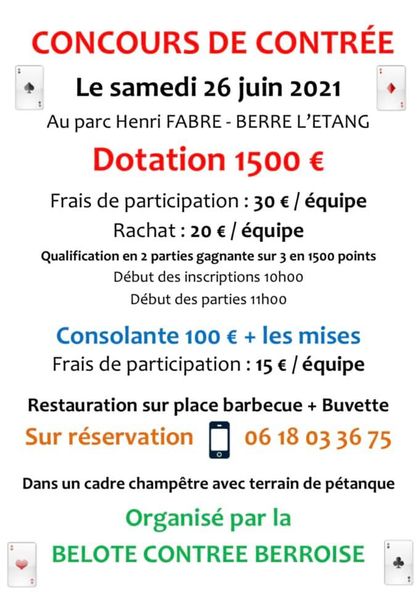 Tournoi de belote contrée - Berre l'Etang - 26 juin 2021
