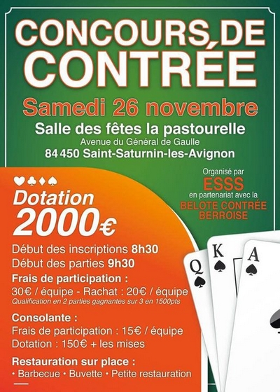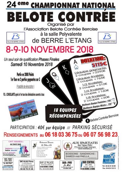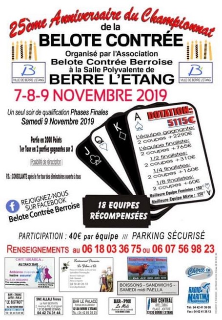 Tournoi de belote contrée - Berre l'Etang - 7, 8, 9 novembre 2019