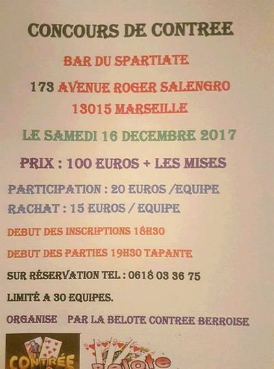 23ème championnat national de belote contrée - Marseille - 16 décembre 2017